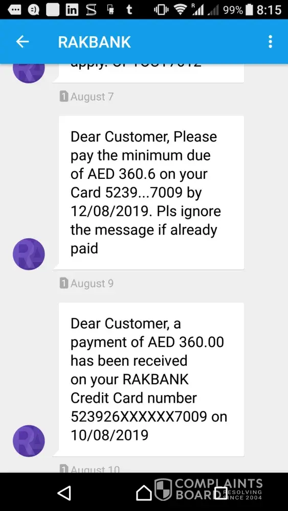 I will file a complaint to the Central Bank of UAE as they clearly mentioned that it was illegal and unfair. Also will take it to the Media platform so my case will be heard and not be taken for granted.