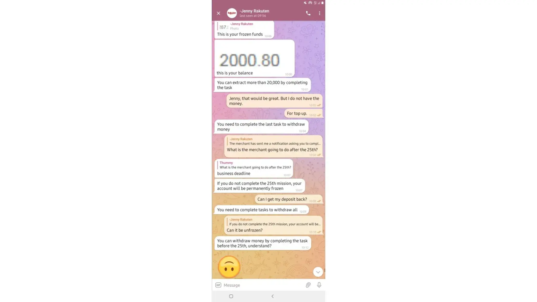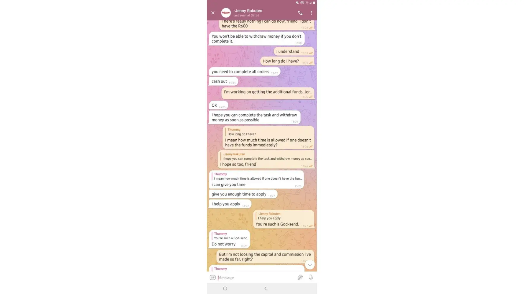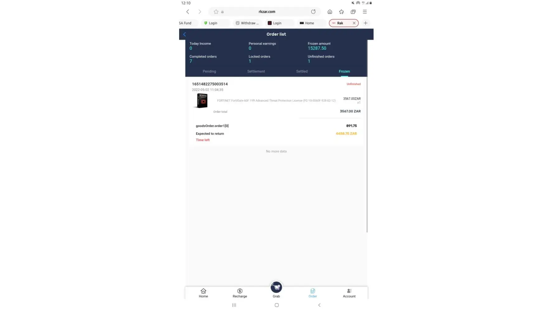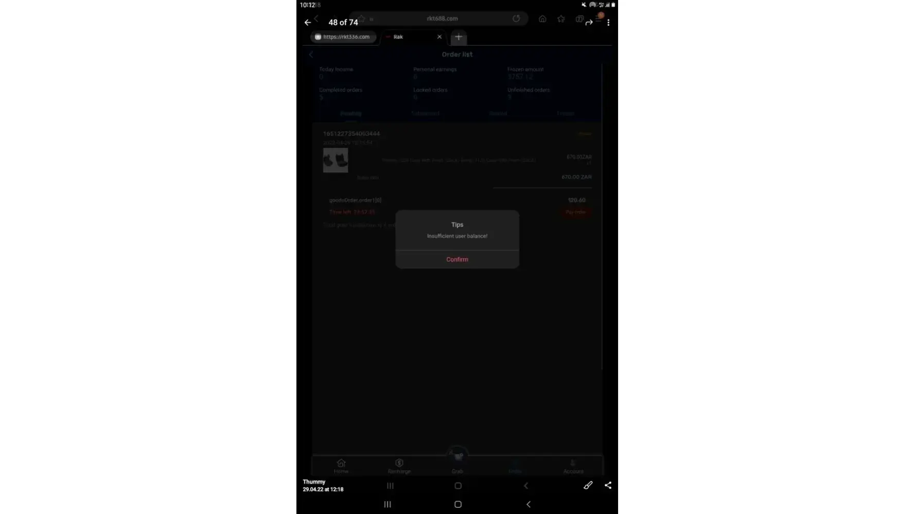 on 02/05/2022. which means losing all the money I put in which is R6 432. I have fully completed 7 orders and I'm left with one. Replenishing to pay for orders was not communicated by the customer service before I started this mission, I only got to know about it when it happened and I was told it was normal because the system just dispatches orders.