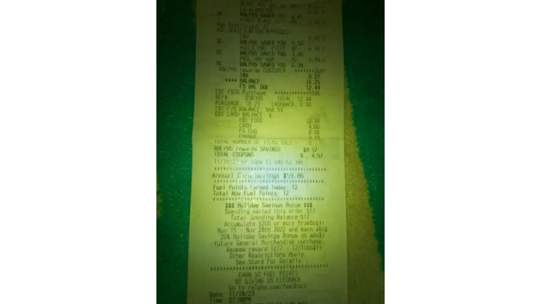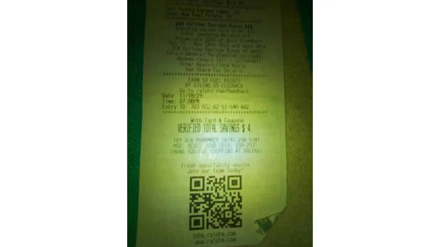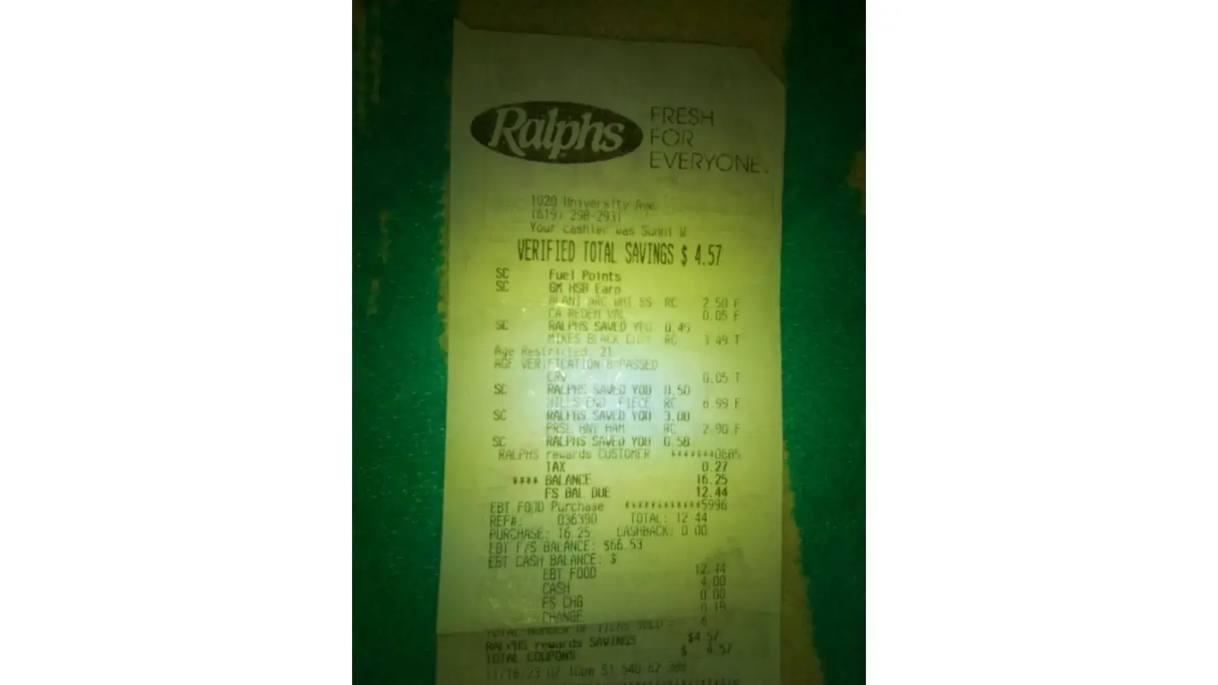 On Saturday, November 18th 2023, I was on my way home after visiting with my mom. Earlier in the day her and I did some shopping at Walmart as well as Vons. I do not have a car so I tend to carry a backpack which I generally have reusable bags inside of. I had a few items from shopping and I had put these things inside of my reusables. At around 6:20 pm I stopped at the Hillcrest Hub located at 1020 University Avenue San Diego CA 92103. I had already planned on stopping at the Ralphs grocery store for some deli meat and a couple other items. I went by the Trader Joe's located next door to Ralph's. Left Trader Joe's at approximately 6:45 and walked into the Ralph's. To the immediate left there is a deli counter that I stop at to get the meat I wanted. While I was waiting to be helped, I notice the security guard walk in the front door and go past the starbucks then to the left. I am sure that he had noticed me standing there with my backpack and 3 random bags slung over my shoulder and arm. I didn't think anything of this. I honestly feel that the population has adopted the earth friendlier habit of using bags that are reusable.