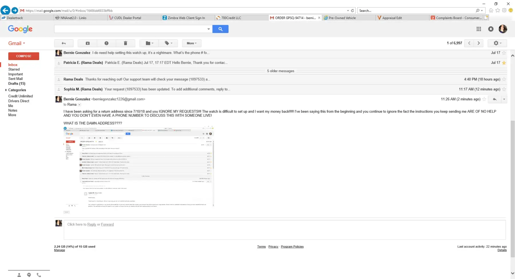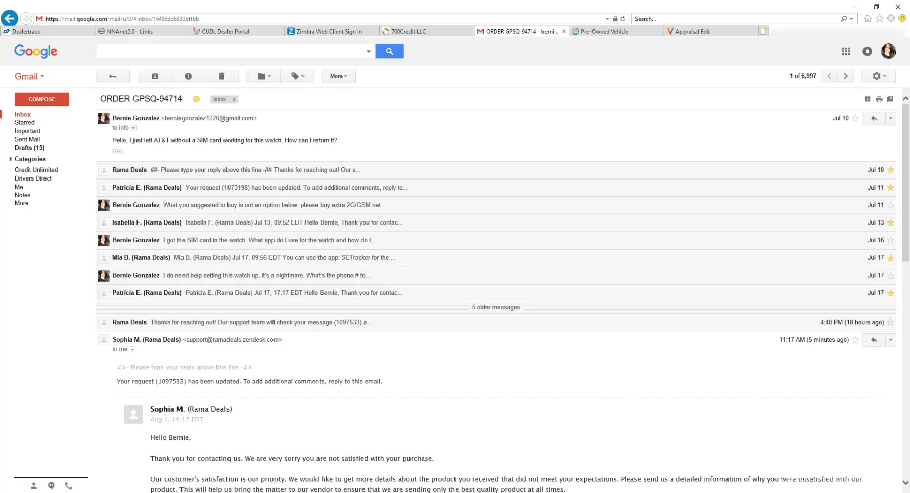 I received the watch on 7/10 and went to at&t for a sim card, which I was told they do not offer it there for the watch. I contacted rama deals and asked for a return address for a refund on 7/10. They sent me the link to purchase a sim card online instead, which I ended up purchasing and still couldn't get it to work. I emailed them back and told them. they sent me a link with instructions, which I still couldn't get it to work/sync on my computer. I asked for a phone # for support and again, asked for a return address for a refund. they said they only communicate via email, no phone support. I asked for a return address again on 7/23 which was ignored again and again yesterday 7/31 in which they responded with...only refunds are given if its within 30 days from the time of order. they have ignored every single request for a return address for a refund since 7/10. I purchased the watch on 7/01 and it's been an absolute nightmare to get a refund. please help.