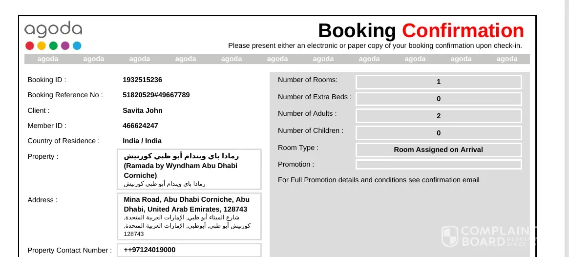 We booked The Ramada, Abu Dhabi for dates Oct 16 to 20, 2025 well in advance (Sept 06, 2025). I also received confirmation for the same. This was via Agoda. On arrival on Oct 16th, The Ramada front desk team said they had no such booking. My complaint is about how the front desk staff and travel desk at Ramada dealt with us. We were not only denied our...