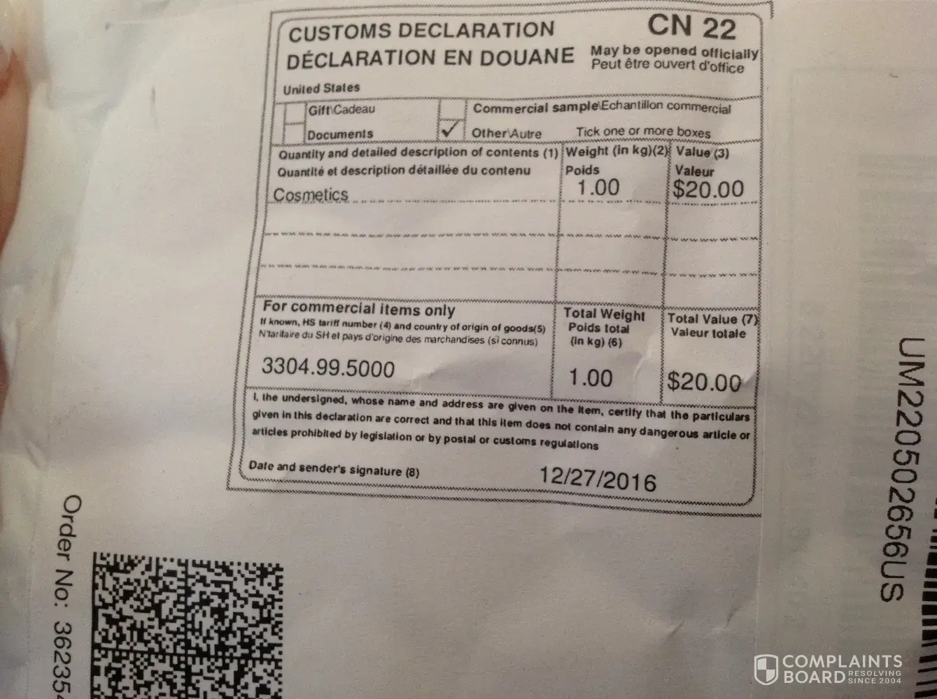 Order no. [protected]=$89.46 06/01/2017