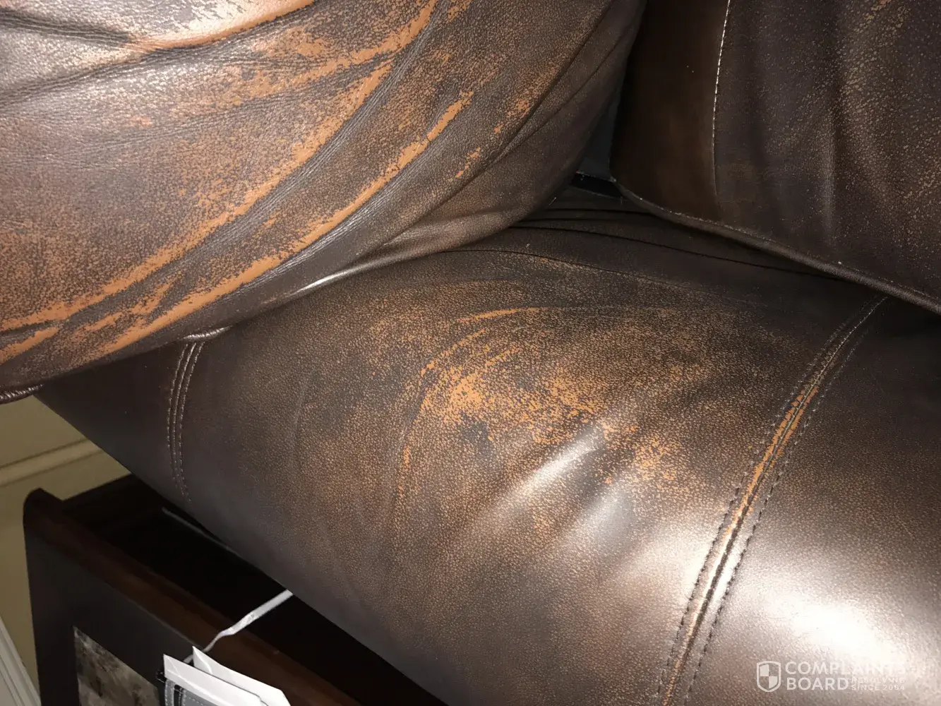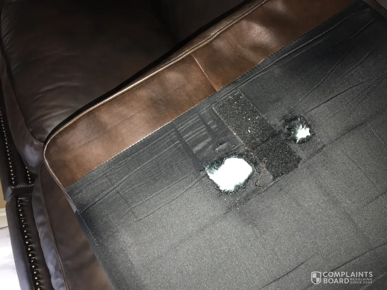 There is Quick discoloration random holes appearing under cushions already had a technician come and check it out and it still continues they aren't even 2 years old and when I asked again they said the technician will have to take a look again