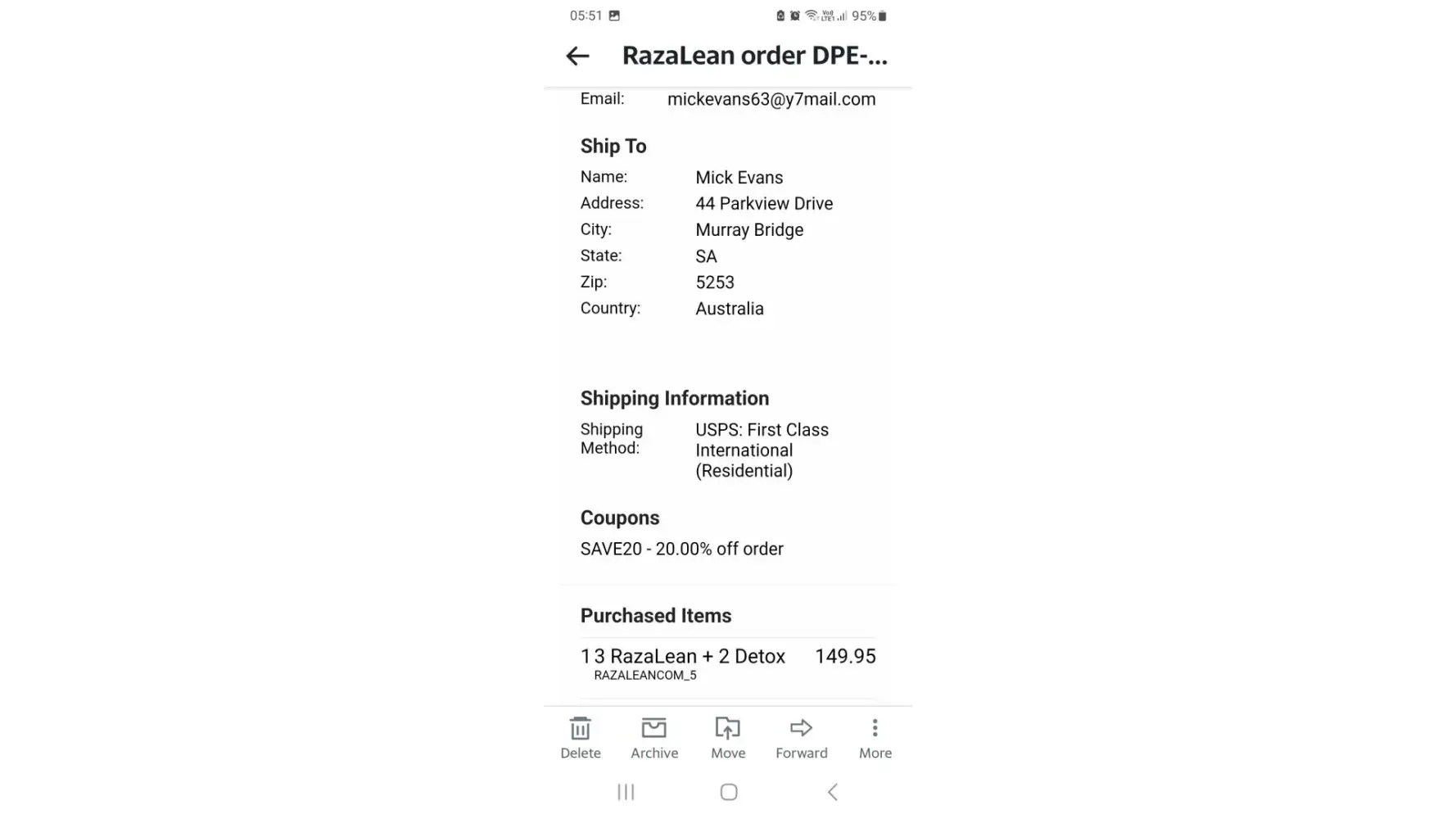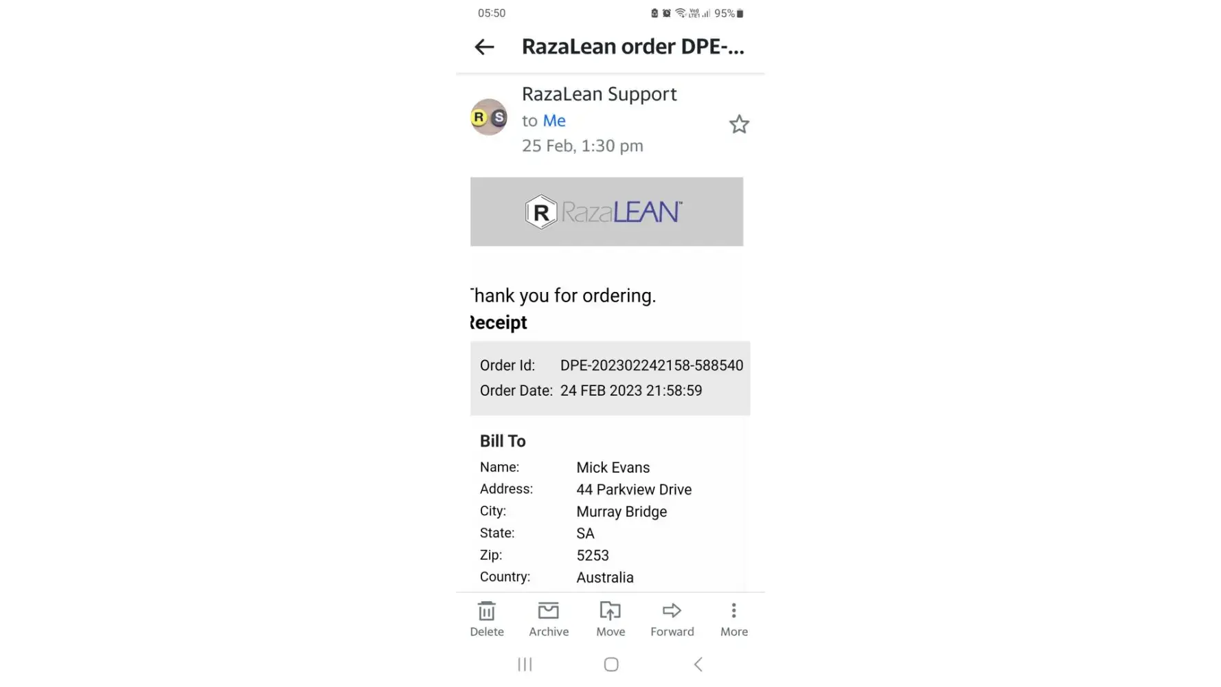 I ordered $119 of Razalean products on 24th February and its now 6th April and nothing has been delivered. Repeated emails and no reply. What a rip off this company is! How can they get away with ripping people off like this? How can a company have a support email address and not reply to ANY of my repeated emails? I have attached receipt for your attention.