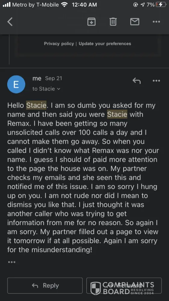 So I have been looking at a home on 615 S Cherry St Tomball tx 77375. The agents name is Stacie Fontenot. She called and I didn't know about Remax nor did I know her name at first. I was dumb to not see the agent or anything. I hung up thinking it was a scam call. She emailed me saying "Thanks for hanging up on me I was trying to reach out to you about the home". I emailed her back a few days later because I didn't see the email until then and apologized greatly for the misunderstanding. She hasn't emailed back. So my partner requested to see the house today and no words back and well my partner called and Stacie answered with a "Hello" but with a bit of an aggravated voice. And I said we would love to check out a house for rent. She said "which one" but still has a weird tone. Then my partner told her which house and she says "it's $1200 and you need to make 3xs the rent and have good credit and have a background check done, there is no problems there right?"