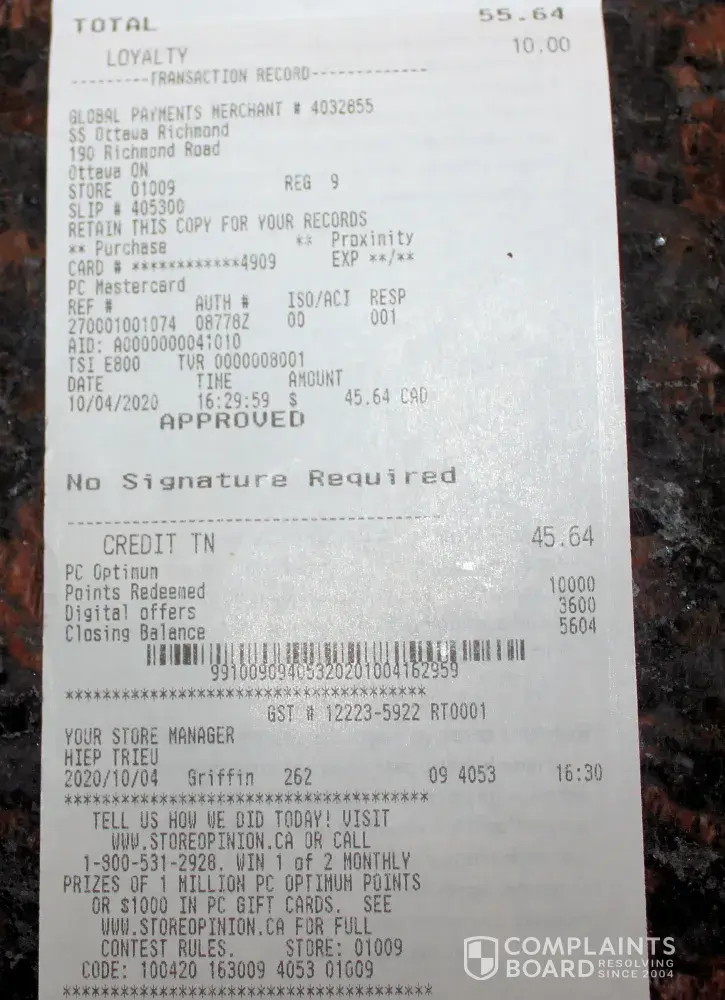 The lady at the customer service counter ( barnett/lougheed and westwood in Coquitlam) is rude. No hi, no smile at all. I was returning my pc express order and she implied that I was cheating the line by returning at the customer service instead of contacting pc express. She then asked me why I was returning all of my order and I told her that it was cheaper at Costco even though I paid for the pc express membership. I own loblaw and weston shares and definitely this is a sign for me to dump the weston and loblaw shares. Horrendous customer service!