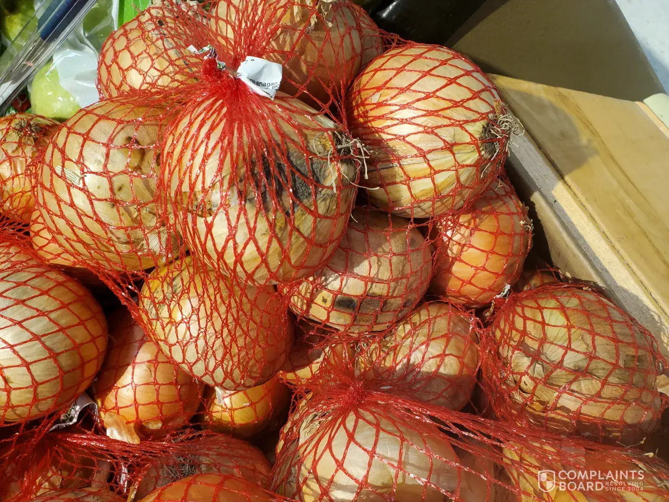 The onions are usually bad, but last weeks' onions were terrible. 99 percent of the onions were so rotten that they could not be eaten. But when I told this to the manager, all she said was that the reason the onions were cheap was because they were in bad condition. But even if some food is cheap it doesn't mean that it shouldn't be unedible. I want good, clean onions for a fair price.