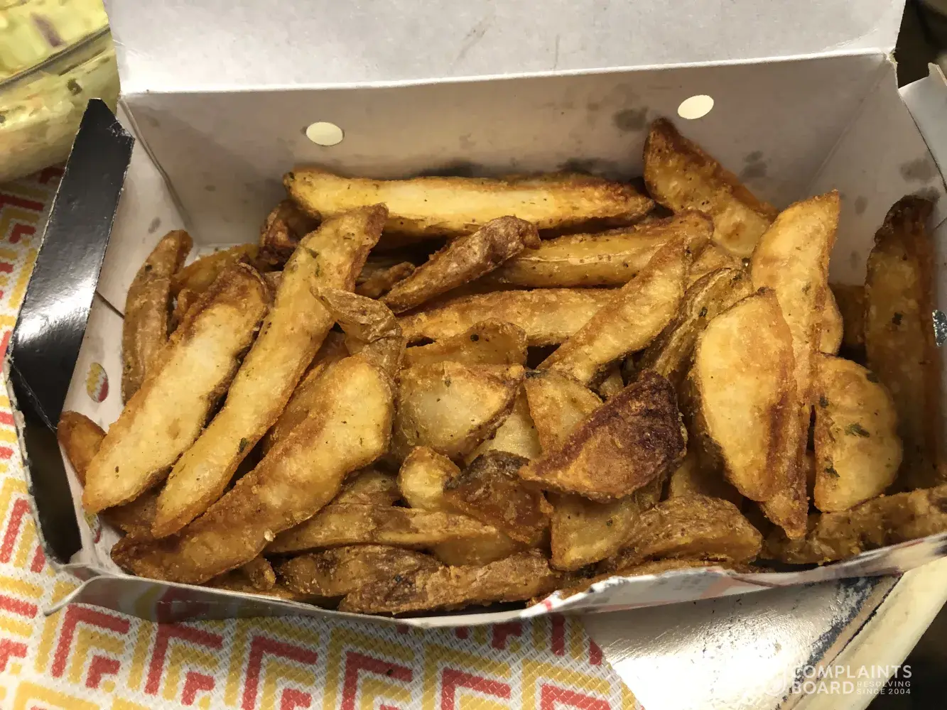 Wow pay 5.99. For. Taylor's they where over cooked and box was only half full. Not impressed by no means If the staff is. It trained properly then maybe they should be re trained reads in the box 600 grams and including the box the weight is 379 grams. I should have bought my own fries at least I I wouldn't have over cooked them I wouldn't recommend them to anyone.
