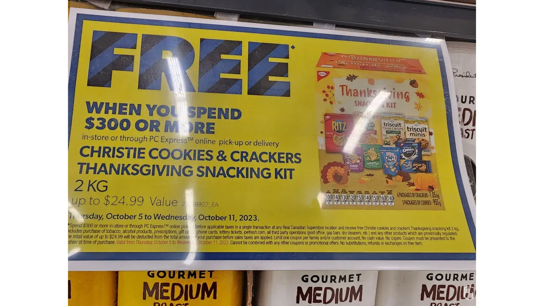 Superstore was advertising free gift ( snacking kit) for when you spend over $300 purchase which we were way over at checkout.Cashier asked us to go to customer care to pick up our gift. Customer care substituted the gift and gave us a kitchen scale instead said they ran out of the original gift. And either take it or leave it!