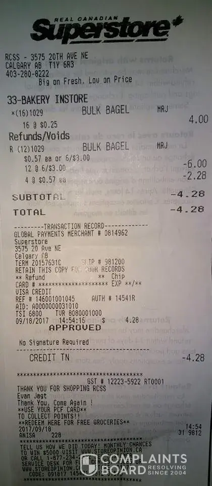 After today’s experience, I feel I’m being deceived by superstore employees. Apparently I was given wrong info then refused the return. Then anybody who helped me, refuses to acknowledge they helped me as they don’t want to give me their name – they walk away. I will definitely be bringing this up with the Store Manager and going public with this until this situation is rectified. The original cashier had made a mistake by giving me wrong info, but the fault is assigned to me and my money is being wasted.