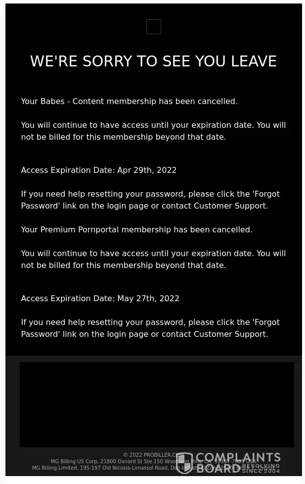 When confronted, they cancelled my "content membership" - but for some reason I received two access expiration dates - one for the month I cancelled, the other for a month after. Not sure what's going on here, but it's shady AF. See screenshot #2.