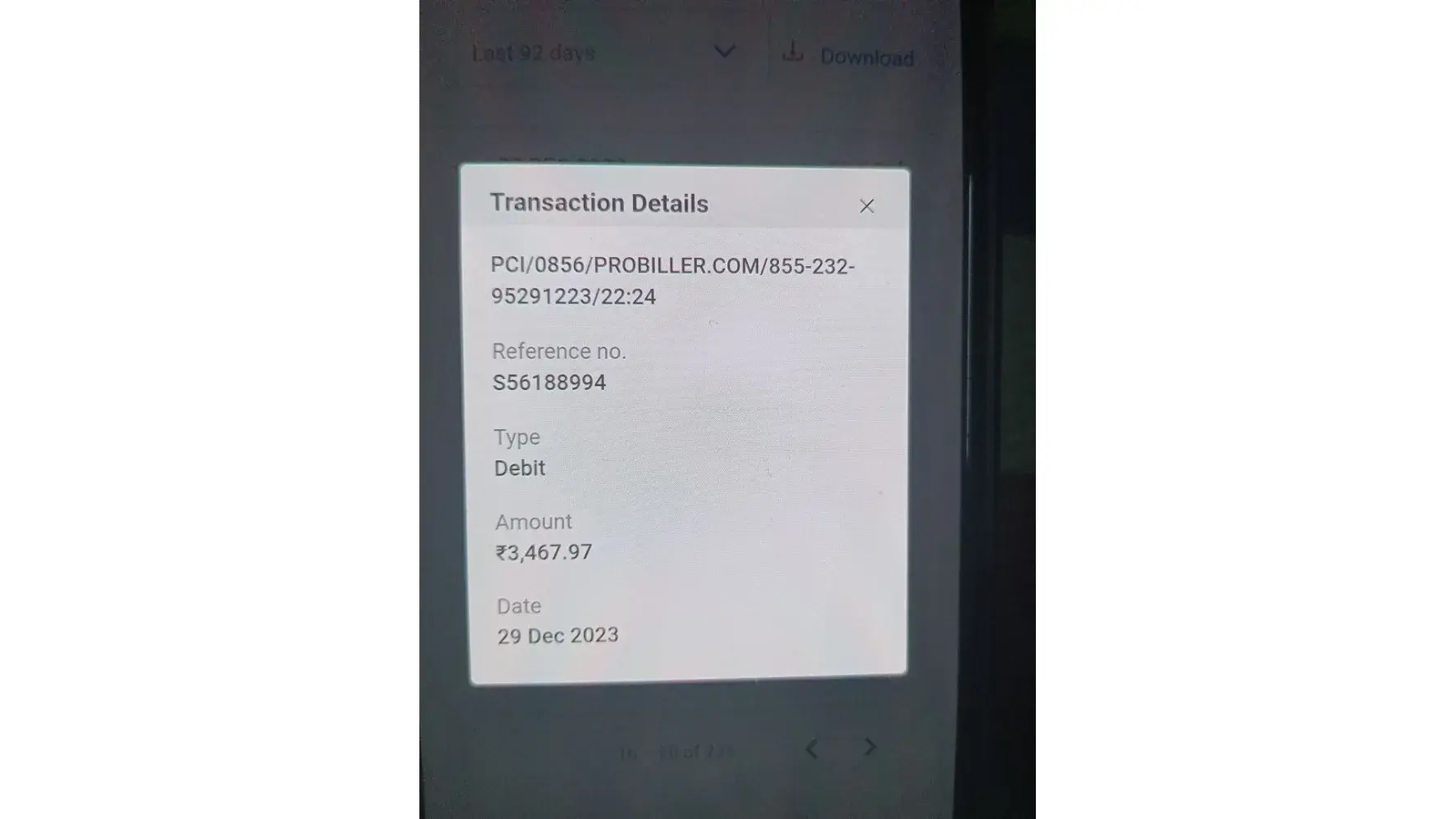 We have tried payment ₹39 membership for free trail. With out funds in our account. The payment was declined on 26-dec_2023. But after 2 days 29_12_2023 we transfer amount 11000 to another realted paymentsvtransaction. Then they have debited rs:3467.97 with name of probiller.com. This is not correct and froud is happen to us. Pls check this issue and refund. After I called probiller.com. They have cancelled the membership. They told that they will check it and confirm. Their is no response from their side