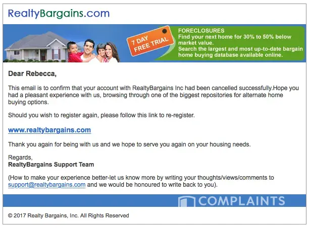 I agree! I am just now dealing with them and I believe they are scammers. I cancelled my account right after opening it, then checked to ensure I couldn't get in. With no access one would expect that by using their link to cancel, adding comments as to why you are cancelled, you would in fact be cancelled. Not with them...the charge showed up in my credit card this month. How convenient for RealtyBargains to bank on the prospect that people will not look at or open their dangerous spam mail which just happens to be the exact documentation proof you produce (using their cancellation link) to remove falsely charged credit cards. What they will tell you is that, in the contract, we told you to hang on to the cancellation reply. What they DON'T tell you is they fail to do is ask you to add them to your contact list so NONE of their email goes to your spam pile. Reputable people ask you to add them.