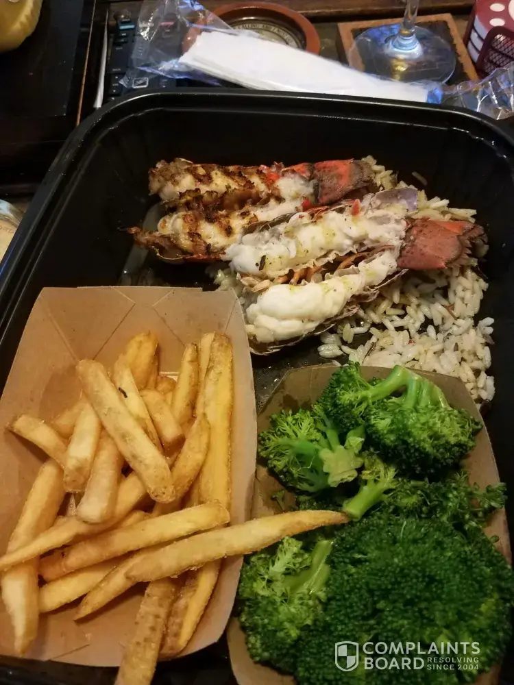 When we returned home, I opened my lobster tail dinner to completely disgust. To say that you as a company charge someone $30 for fresh, rock lobster tails is a completely and utter lie. The product I received could be called nothing short but a lie from what was advertise by your menu and your overall marketing as a whole. The Cajun chicken Alfredo also could be confused with a cheap TV dinner .