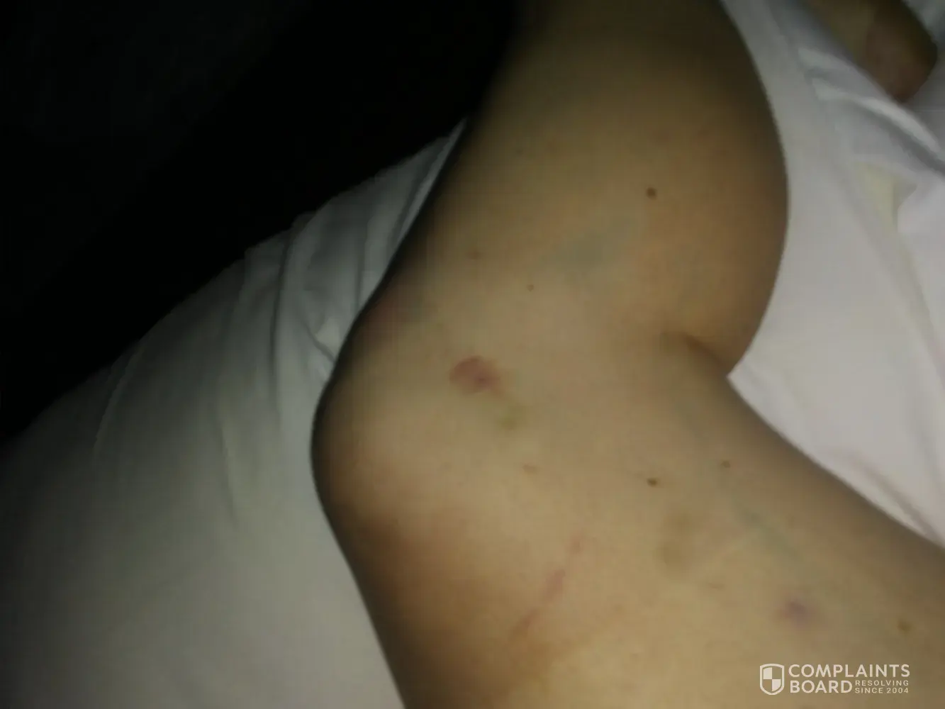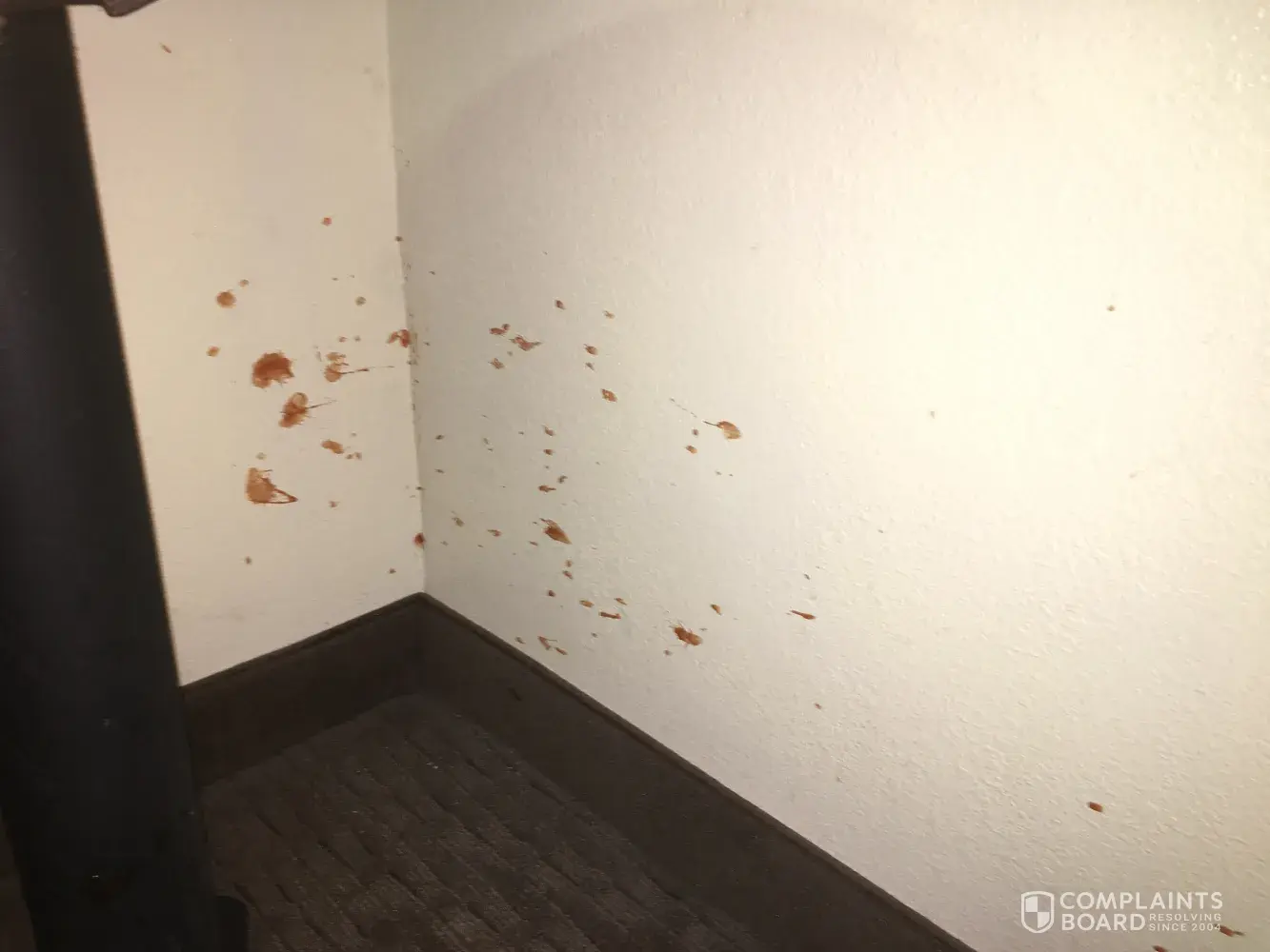 And was told no... being short on cash I stayed there and left early in the morning. I slept in pants and a sweater because even the top layer of needing had black spots on it. I made sure to take pictures of the room showing some really nasty floor walls and restroom and even a spot on the wall covered with some kind of red sticky stuff