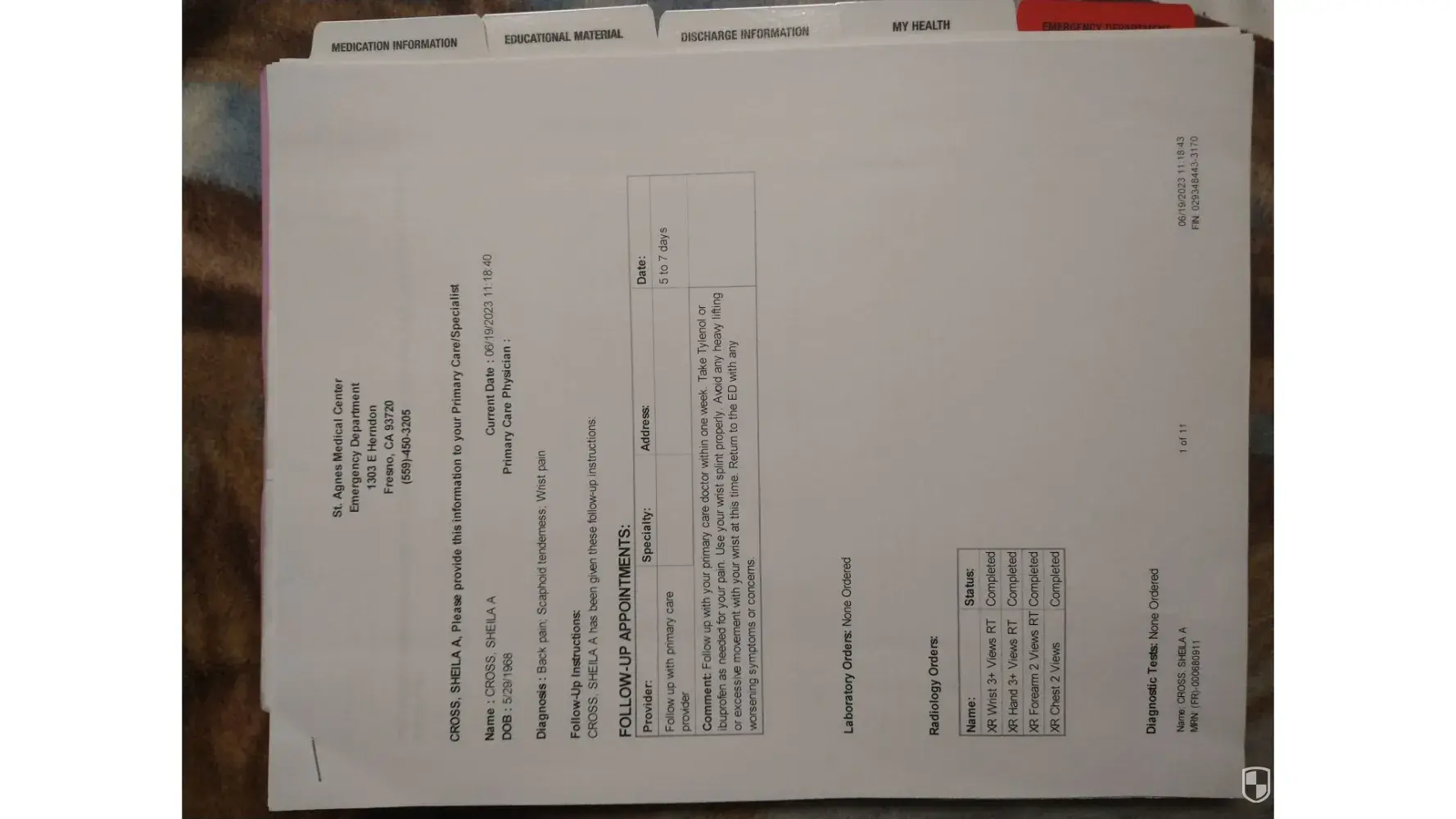 I have resided at HomeTowne Fresno West for over 9 years now. On 06/19/2023 at 7:20am, I walked in the 3rd floor stairwell to go pay my rent, when I slipped in something at the top of the stairs, my foot came out from under me and as I was falling, I tried catching myself with my right hand, bent back my right hand to my forearm and injured my wrist and thumb as I landed on my back, which knocked the wind out of me. As I was trying to get up I realized my wrist was injured which caused me pain. I managed to walk down 2 flights of stairs got to the office and I told Maggie what had happened, then I told her I felt sick and felt like I was going to pass out, it was also hard for me to breathe. I had to lay on the floor as she called for an ambulance. I've had multiple x-rays, an MRI, seen an orthopedic doctor which tells me I had a fracture in my hand and I have torn tendons, so now I need surgery. I emailed corporate a made a claim regarding this incident and I've been told it was reported to the hotels insurance and that they would contact me. It's now been over 2 months and I haven't heard anything and the people in the office say they don't know anything or haven't heard anything. I need help paying my rent. I am completely unable to use my right hand. It's a struggle to even get dressed. My complaint is why hasn't anyone contacted me, I need help. I have proof of my injury and ambulance ride to the ER. I also have proof of how the stairwell and balcony aren't cleaned regularly. There's always food and puddles of liquid or water on the ground and no signs were posted.