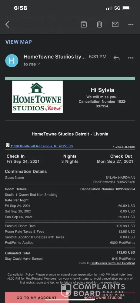 On August 2, 2021, my family and I have stayed before at the Red Roof Inn at 2405 West Hundred Road Chester, VA 23831. We enjoyed the Chester location, a beautiful hotel, and a great room! However, I made a reservation for a room at the Red Roof Inn located at 2204 Airport Blvd, West Columbia South Carolina for August 21 to 22, 2021. The reservation was for...