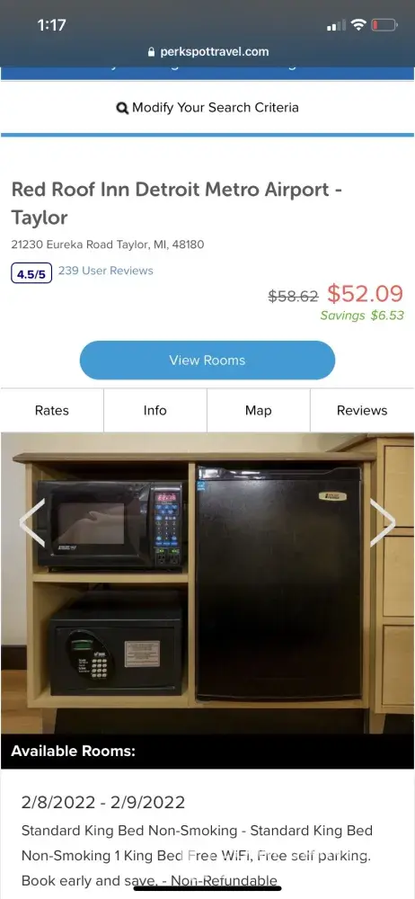 Hotel stay Red Roof; Warren Michigan