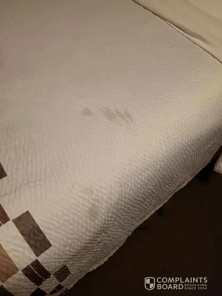 We had stains on comforter, 1 pillow and sheets. The front desk was contacted about the problems and we were told that they would get some if they had any. 5 minutes later the employee came to the door with wrinkled sheets and said if we don't return the dirty ones that night we would be charged for them the next morning so i told her never mind because i was in my sleepwear. The shower was very dirty and unacceptable for taking a shower. The online advertisement mentioned breakfast and the employees said there was none available. Thursday morning on checkout my daughter asked for a receipt and the front desk clerk said they couldn't give her one because it was booked through a 3rd party, this was from her employer Aldi's