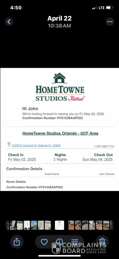 I had a reservation for 05/02 at the Home Towne suites (Red Roof) hotel in Orlando. When I arrived, the security guard told me my reservation was cancelled…without notice… leaving me on the streets of Orlando alone knowing nobody at 2:00 am.