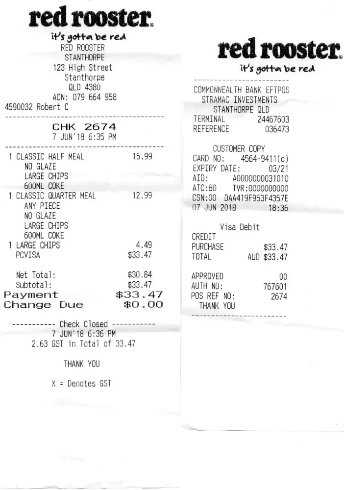 I bought a half chicken n chips at Gracemere on the 23rd April.