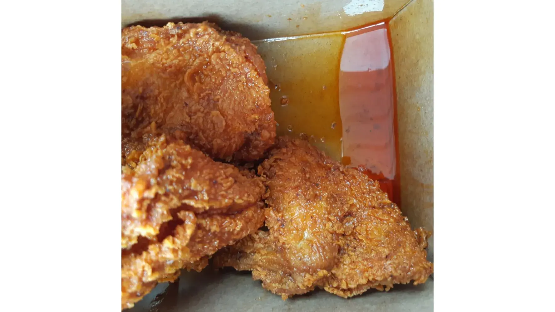 Never having tried the spicy chicken I ordered the pack with 3 pieces, small chips, potato & gravy & 300ml juice. Staff very polite at takeaway window. 5 minutes back home and on opening pack massive disappointment. The chicken was literally swimming in oil, tiniest little bag of chips (way too small). Tiny pot of potato & something grey & slimy the call...