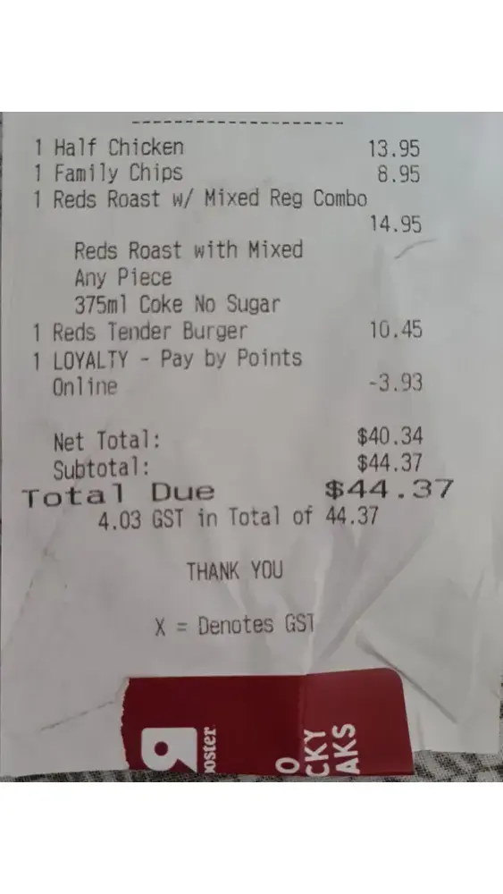 We ordered 4 meals at the Red Rooster at Victoria Point. One of the meals was meant to be a Flayva wrap, but we got a Rippa roll instead. The 2 large chips (2 meals were large) were half full - I can provide photos of how empty the chips were. We were extremely disappointed, we order Red Rooster at least once a week and these meal were terribly disappointing.