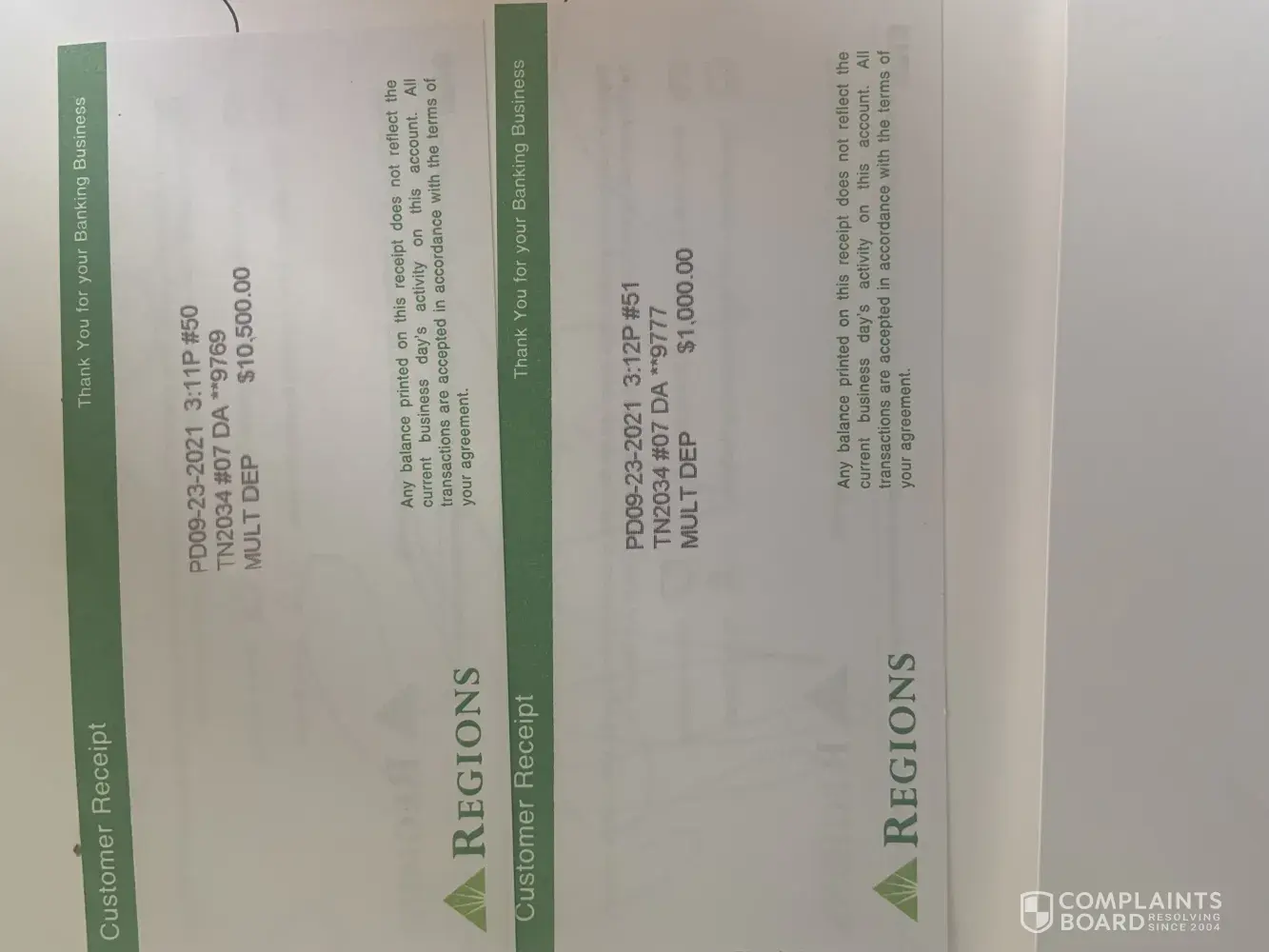 On the 23rd of September 2021 I opened 3 accounts with Regions bank. A personal account (I deposited $1000), a savings account (I deposited 10, 500), and also a business ($3, 500). I had great faith and trust while opening the account. The financial Relationship Consultant by the name of Marty Walker showed extra ordinary customer service. Over the phone and also during the visit.