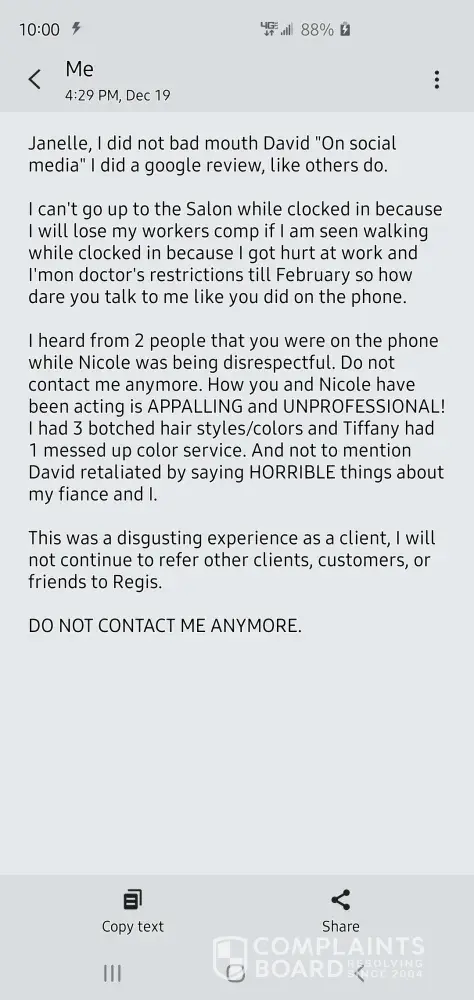 Regis Salons / The Beautiful Group Management complaints: history and resolution overview