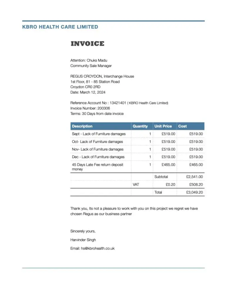 I rented a Regus Private Room from mid Sep 2023 to Jan 2024. All invoices were paid on time and they charged quite a hefty restoration fee although it was just a short-term office use which I paid without any issues too.