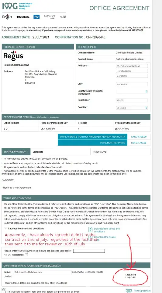 This complaint is truly reflective of the woeful performance and total lack of respect shown to clients including me. That is why this review is uploaded here. It is a warning to anyone considering Regus.