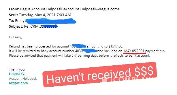 Received a single email asking for details. Replied several times, asked for an escalation... NO REPLY from Regus.