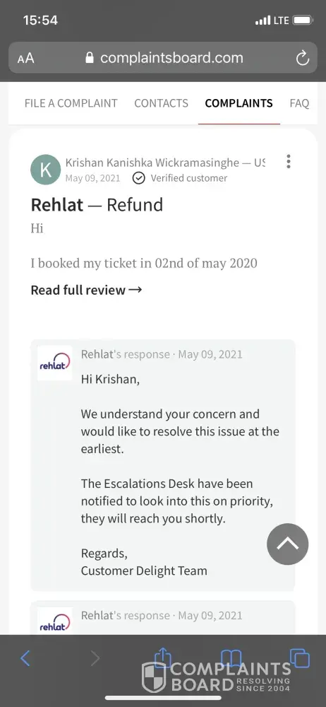 Booking id: 1640431 this is booking is done in oman airways and the flight is cancelled due to covid-19, I requested the refund around 16 months back and the airlines policy will be they can initiate the refund after one year of booking date. As per policy 9th january 2021 completed one year of booking date, I speak with the airlines directly and they already initiated the refund to rehlat team, but your side you not giving the response, please do needful for this case, other websites are doing well in the refund criteria, rehlat only the website they are not giving the proper response the customers, if the situation continues they will lose the customers. Mob:[protected]