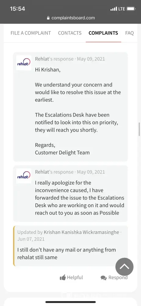 Rehlat is hopeless. Just coz I didn't get my refund processed on time, I am paying all the interests charges from my end from past 2 months. Now who is responsible for all those extra charges which I am paying.