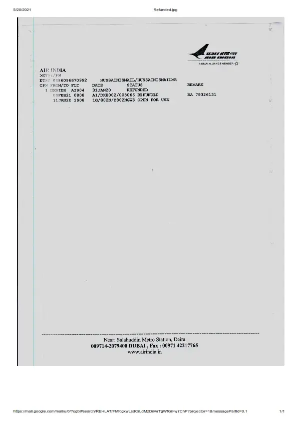 Please find the attached document of proof that Air India has already Refunded you the Money o 09th Feb 2021.