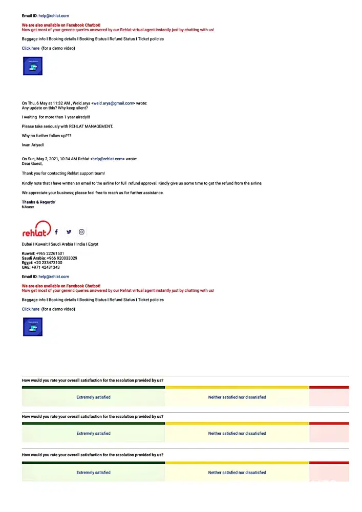 Please see the attachment the communication from April 2020 regarding request for refund till now no progress from Rehlat (more than 1 year already).