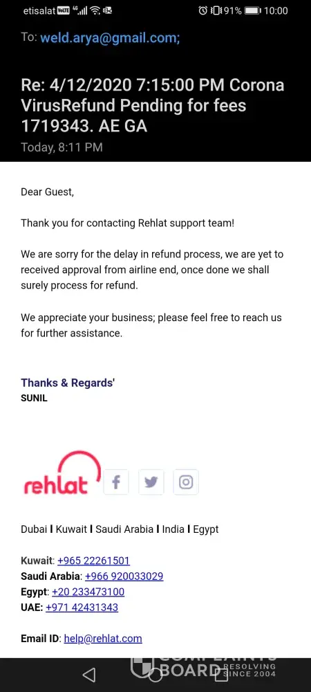 Is there any possibility that we can address to this Gulf News for intervention and additional support and all general public can know the services of such reputed team (Rehlat) doing the refund process almost one year and today date there is no concrete response, when the refund process will be completed.