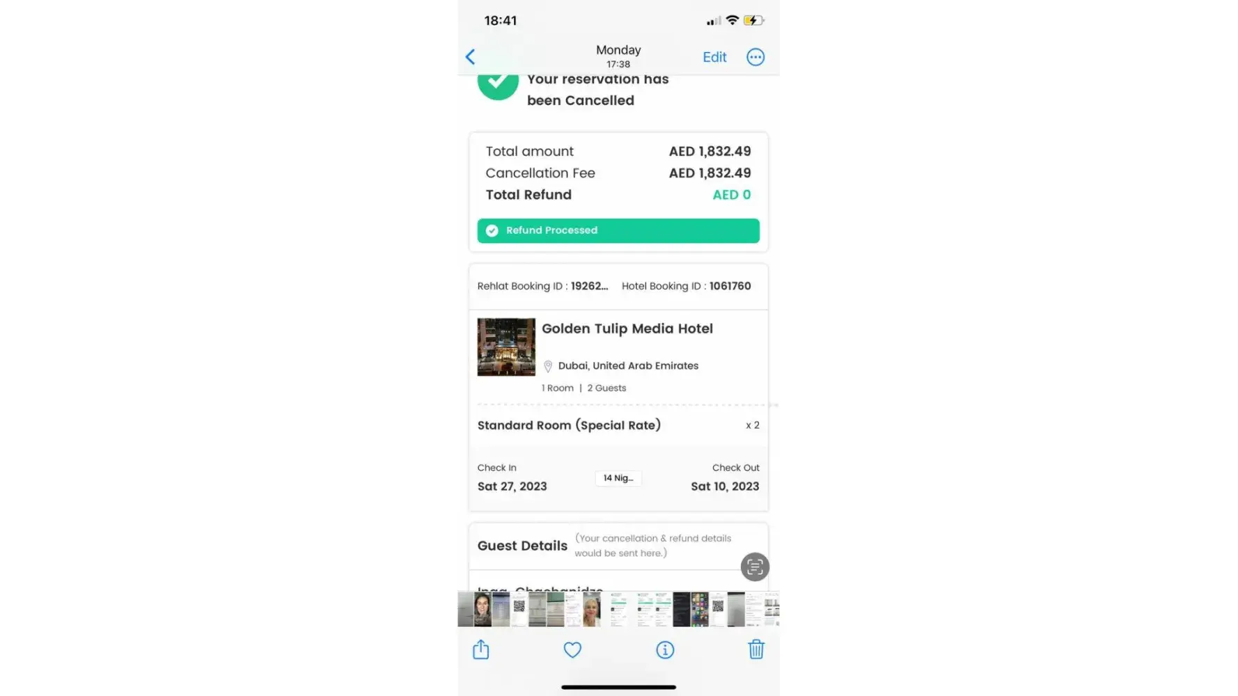 I had booked Golden Tulip Media Hotel in Dubai via Rehlat in April 2023 . It was two bookings