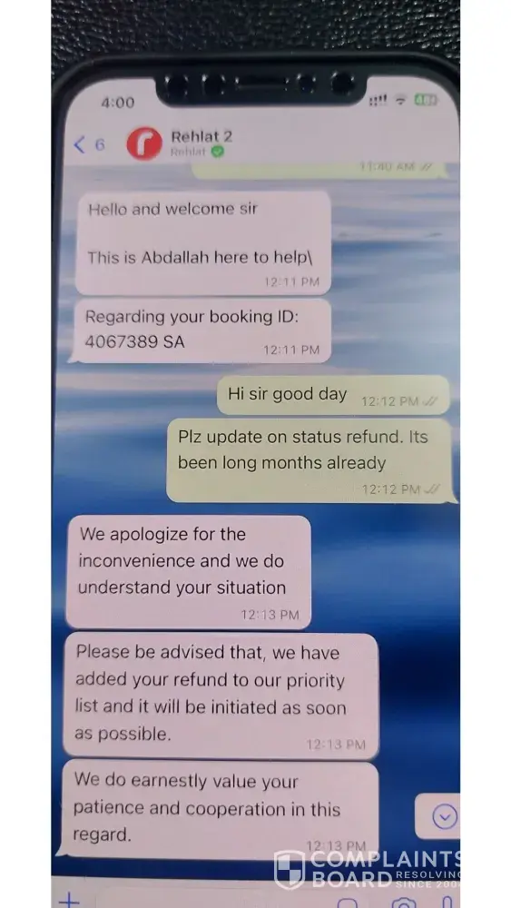 I wished I checked reviews before I booked a ticket with rehlat. Even after they gave me confirmation of the ticket, (cost me sar1205.10) they didn't issue the ticket and later asked to change date with additional amount. I asked for a refund, and they gonna charge me sar200. Even though they made a mistake, I agreed. They promised to refund the balance sar1000 after deducting their said charges within 50-60 long days. They were just lying. It's been 5 months already, and I was promised to get a refund. I made several calls n emails, evertime I follow up on their customer service, and they answer will be - soon they will get back to me in 24 hours. Now, they don't even reply or respond to me. They took my money and wasted my time!