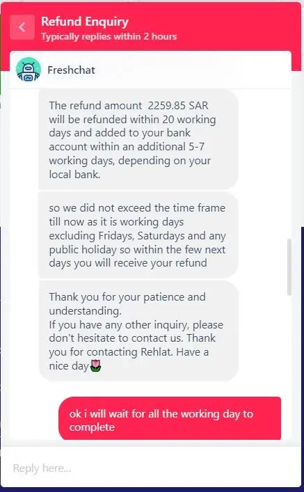This is very unprofessional and still awaiting for my refund after more than 30 working days. Rehlat is not keeping up with their promise. It’s been 33 working days since 11th January 2023 till date 28th February 2023. Where is my refund? I will have to go ahead with legal proceedings as Rehlat is not willing to close this out for me. I do not look forward to hear from you at all. Will see you at court.