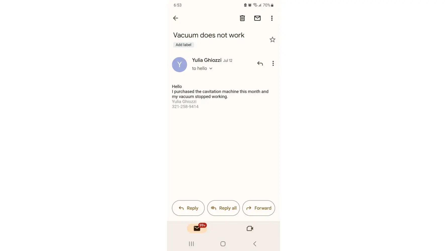 Desired outcome: Replacement or money back