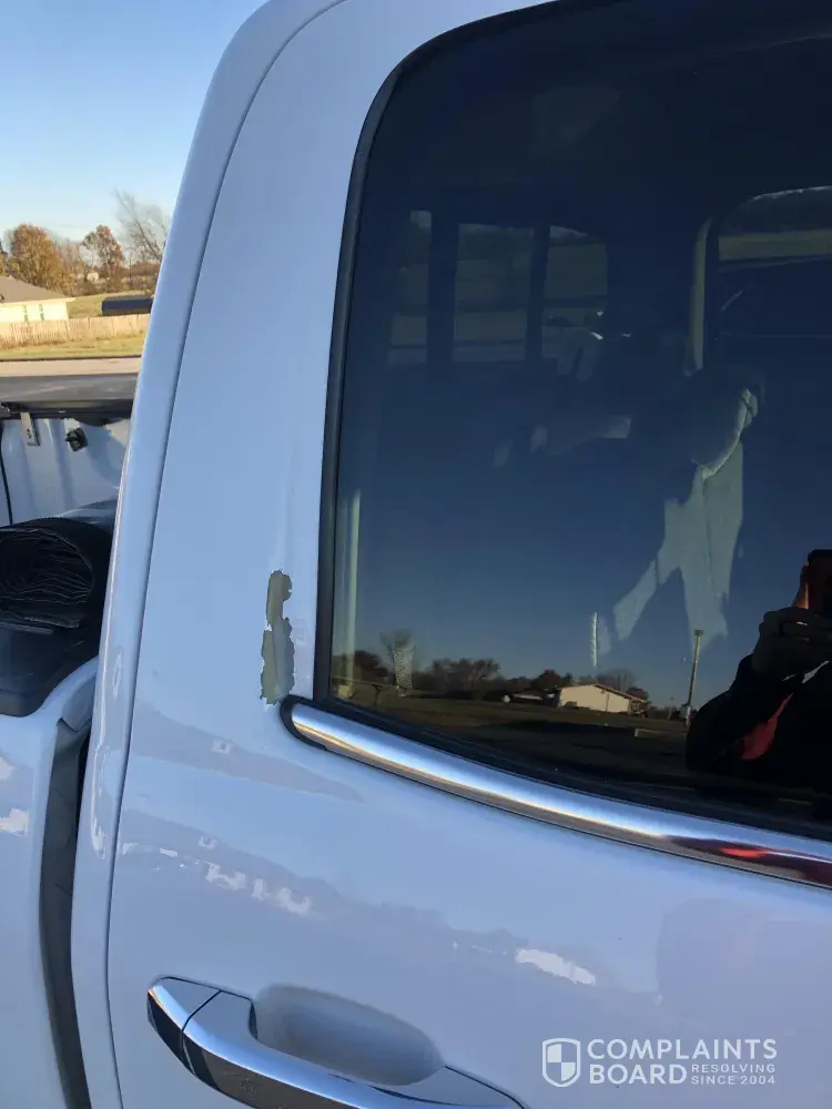 I contacted my local dealership (Reliable Chevrolet in Springfield MO) and they started working on a claim with GM. They got them to cover it 50% but refused to do the work because it would cost them too much and GM wouldn't pay them enough. After making a negative online post the dealership told me to take my truck somewhere else and lied to corporate GM telling them I never cooperated with them. They said I never brought my truck in when I had the manager of the body shop look at it and take pictures. This will be the last GM vehicle I own. I know 3 other people where the paint is peeling off the rear doors right behind the window and have seen tons of post/pictures online about the same issue. But I have been told this is a rock chip. Rock chips cause a chip, not your paint to peel off of you vehicle. Do not to business with any Berkshire Hathaway Automotive (Reliable Chevrolet) companies. I called to complain to them and they told me to call the dealership.