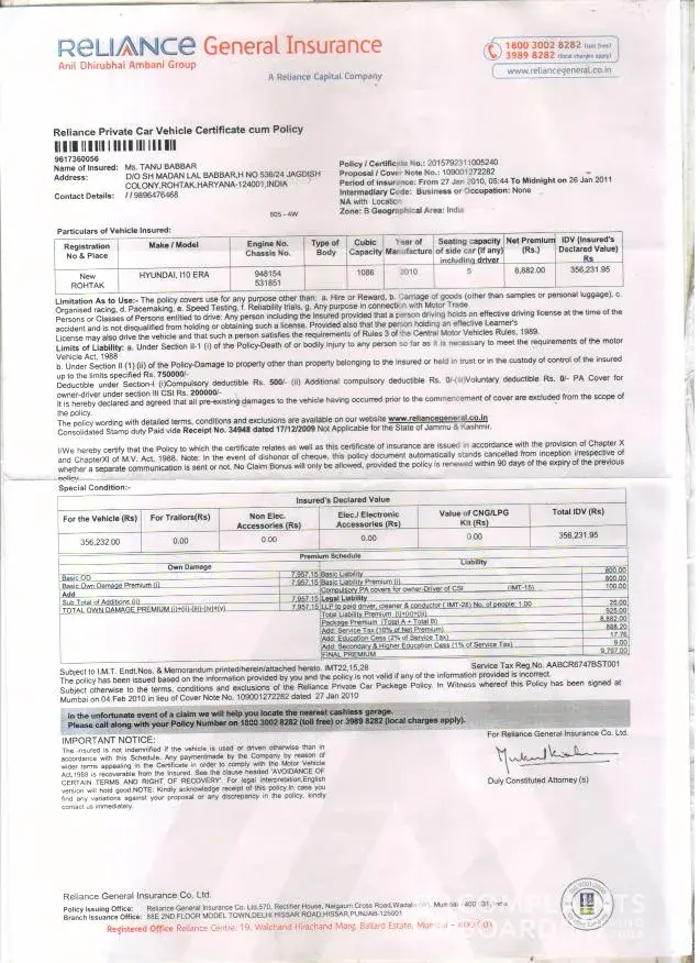 Reliance General Insurance Co. Ltd. Policy No. [protected]