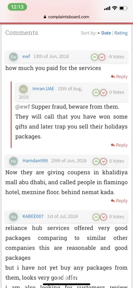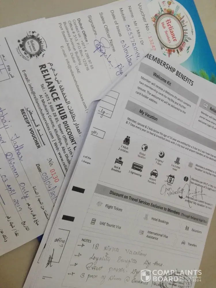 How this is called a scam: and my mistake. I don't know about this company how log they are in UAE, the way they inviting in Room for present the package is unusual, the way they want the payment on the same time is Risky and the way they are chasing the people is really seems scam. I requested to all please don't go in such activity. I don't know Reliance is actually having a contracts with Hotels or they are fake people only sent 2/3 families on trip May be they sent their staff or partners on vacations on the money the illusionist they gathered. Why I am saying it illusion that in normal senses no body will take such silly decisions.