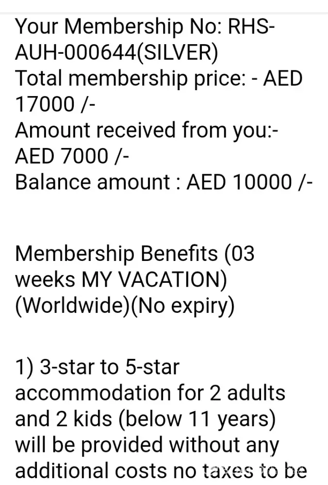 I invited by them to collect the gift voucher and coin and while attending the presentation I was not having a single interest in their plans and concept as I don't have any plan in near next one year due to Hajj Plan InshAllah. When they offer a tea and we take tea I don't know what happened I guess, got hapnatise because in normal senses I can't take such a silly decisions. I paid amount AED 13000/- through credit cards. Next day when I received the welcome email the days they offer is difference of 1 week. I email them in a professional way that this is not the offer you Advised in presentation and they just reply the email has sent to the sales team. Next day when I again called in their other place for referral Draw winner I got confused that what they are doing. They are trying to attempt each person offering to come to their place and when they taken tea they take such silly decision.