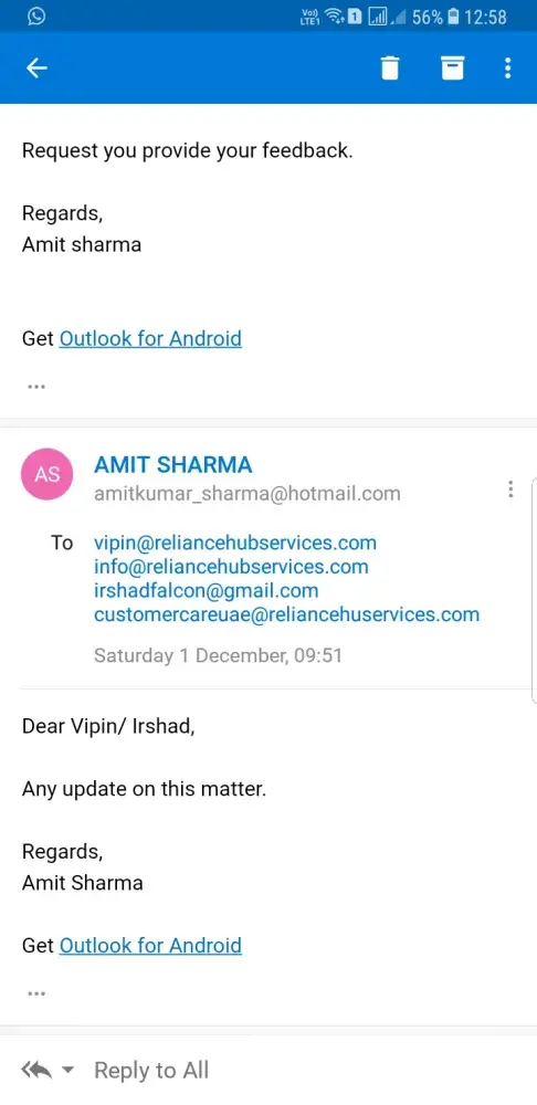 Hello everyone.. Reliance all guys are planning to run way, they have already closed the office in abu dhabi, and they are also not available in dubai. Every one start complaining in the police against them before they all leave...