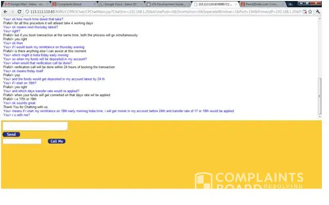They are saying as it is Parsi New Year they cant transfer.I spoke to some person to transfer my money and that guy asked me to transfer it through wire transfer 3 days.He said money will be converted on Thursday(18/08/2011) but credit will happen on Monday.I said that is fine.But the conversion didnt happpen.Very poor Remitance service.