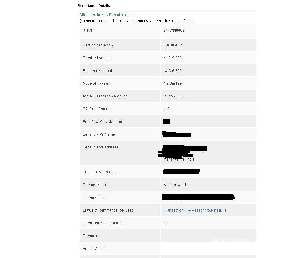 2. You never never never ever get the rate they display on their website. Resist your temptation at their nice exchange rates. I have transferred more than 10 times. Every time before transferrring, I browse other website and compare remit2india with those, and find out that remit2india has the best exchange rate. What remit2india does is they will keep your money and transfer on the day when it is lowest in the week. They cheat you massively this way.