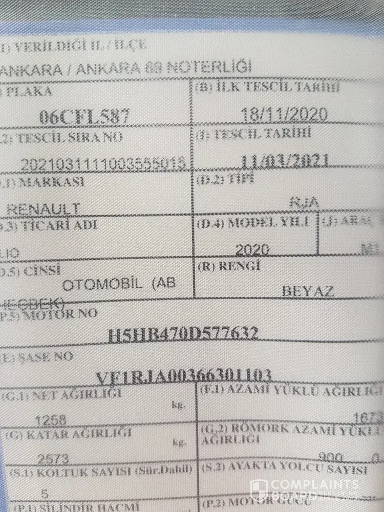 * Since the vehicle will be one year old on 18.11.2021, I took it to Ankara Renault Tan Oto for its periodic maintenance on 27.10.2021 for its first maintenance, it was about 11800 km when it was serviced. When the vehicle broke down, it was at an estimated 13500 km.