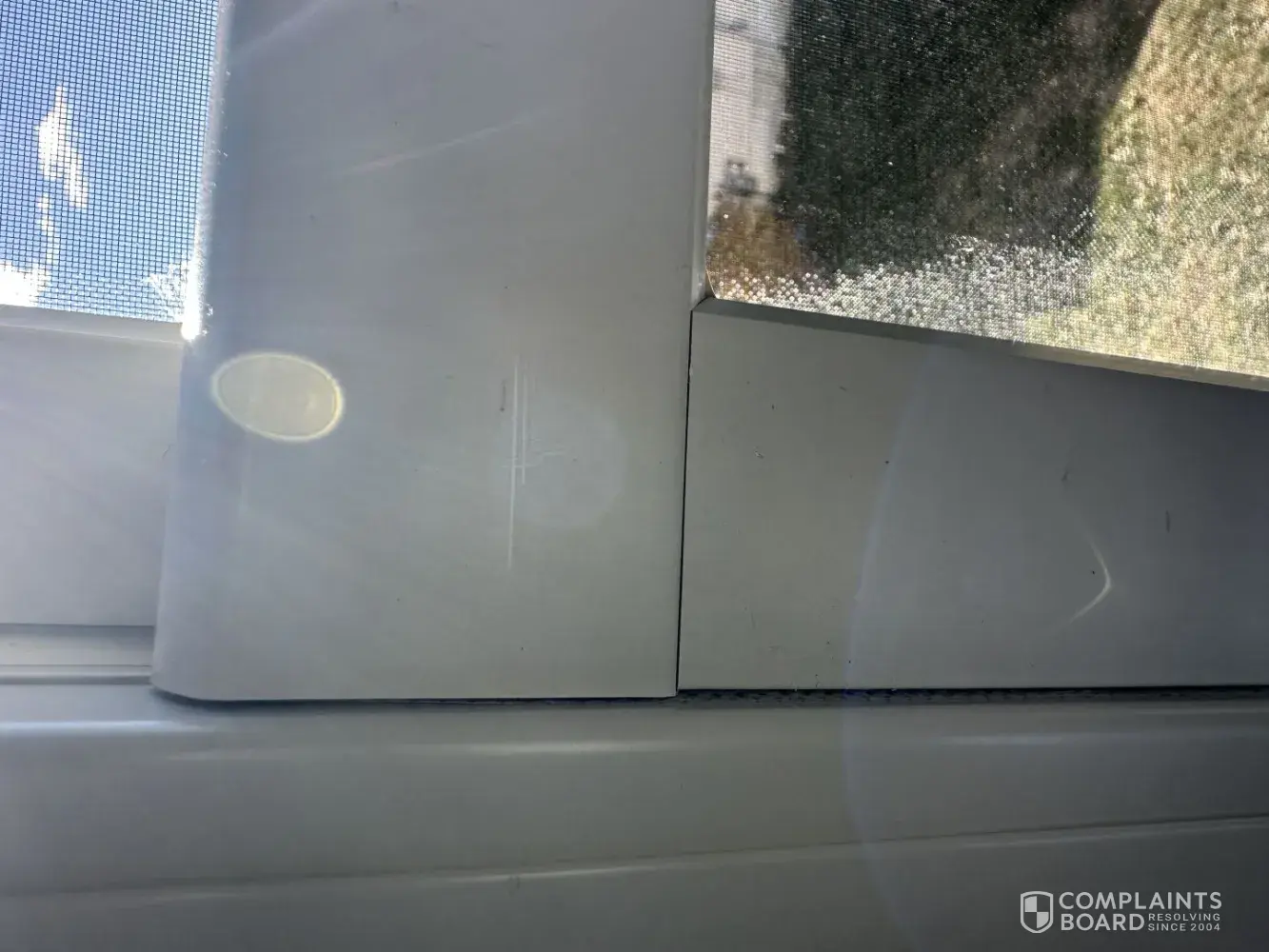Window project started 11/22/2023. Completion is pending due to the following items: 1.) The screen door was incorrect. 2.) Interior caulking is poor, sticky and it is smeared on drywall/paint and molding. 3.) Large gap/hole at 'Rosette(s). 3.) Floor molding damaged (good sized gouge). 4.) Exterior: Large gap between metal threshold and stucco weep screed. (Water damage will result if not repaired).
